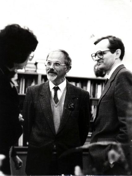 Открытие первой выставки YMCA-Press во ВГБИЛ. Е.Гениева, Н.Струве, В.Москвин. 1990, сентябрь. Фото: domrz.ru