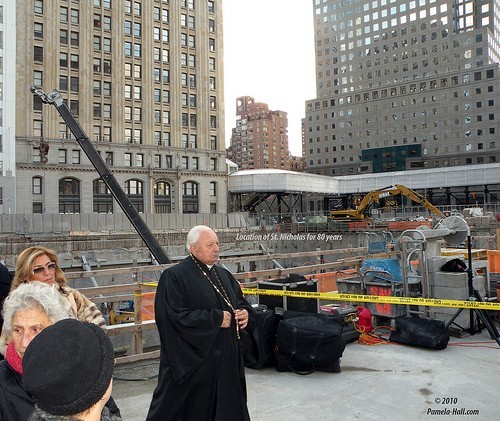 Нью-Йорк: православные греки пришли помолиться на место церкви, пострадавшей при разрушении ВТЦ