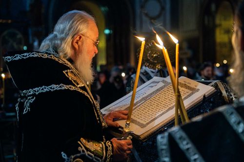 Патриарх Кирилл совершил утреню с чтением двенадцати Евангелий в храме Христа Спасителя