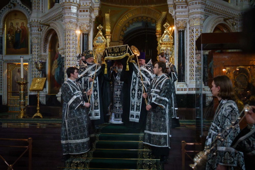 Патриарх Кирилл совершил утреню с чтением двенадцати Евангелий в храме Христа Спасителя