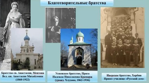 Ликвинцева отметила, что это продолжение традиции создания сестричеств и братств, которые были еще в дореволюционной России, а также в русском зарубежье. В числе организаций благотворительной направленности она упомянула также братство Св. Анастасии в Ментоне, на юге Франции, созданное вел. княжной Анастасией Михайловной, внучкой Николая I; Успенское братство под руководством Надежды Крамарж (Хлудовой), усилиями которого была построена Успенская церковь на Ольшанском кладбище в Праге (просуществовало до 1951 г., ликвидировано спецслужбами социалистической Чехословакии); Иверское братство в Харбине, создавшее приют-училище для мальчиков «Русский дом», где особое внимание уделялось православно-патриотическому воспитанию. «Почти для всех православных братств была характерна забота о будущем православии в России, о воскресении России», – подчеркнула Ликвинцева.