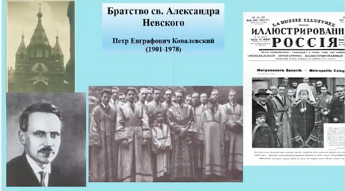 Обзор закономерно начался с православного братства, созданного Петром Ковалевским – «летописцем церковного Парижа», как называли его современники (сохранились его подробные дневники, где он пишет о разных братствах). Ковалевский, будучи старшим иподиаконом собора св. Александра Невского в Париже, стал инициатором создания (1921 г.) одноименного братства, которое сначала объединяло молодых церковных прислужников, а потом включало многих мирян – не только прихожан собора, но и представителей других приходов и разных юрисдикций. В этом братстве, в частности, активными участниками были будущие известные священники протопресвитер Александр Шмеман и протоиерей Иоанн Мейендорф. Довольно много времени ушло на осмысление формы этого объединения и его задач, и в 1936 г. митрополит Евлогий (Георгиевский; управляющий русскими православными приходами в Западной Европе) утвердил устав этого братства, которое существует и по сей день. Помимо задачи объединить служителей собора «на братских и нравственных основаниях», для Александро-Невского братства был характерен «просветительский задор». Усвоение «лада церковности через включение в общую церковную работу» – так оценивал духовное значение этого братства и духовный авторитет и пример самого Петра Ковалевского для своего становления о. Александр Шмеман.