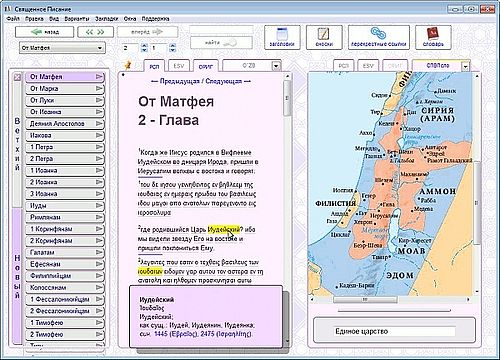 Программа предоставляет возможность сравнения любого перевода Библии с древними текстами на языке оригинала, что способствует более глубокому пониманию Библии. Индексированная поисковая система, работающая оффлайн, позволяет быстро находить понятия и ключевые слова Библии. Ссылки на словарные статьи, включая изображения, карты и таблицы, перекрестные ссылки, сноски и многое другое отображаются во всплывающих окнах, которые обеспечивают мгновенный и легкий доступ к разнообразной информации.