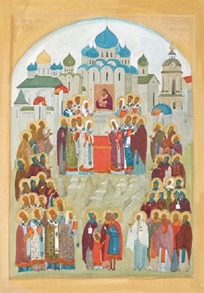 Эскиз иконы «Собор московских святых» для Знаменского храма