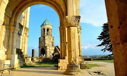 Зато построенный другим великим грузинским монархом, Давидом Строителем, монастырь Гелати сохранил не только средневековые стены, но и великолепные фрески и мозаики XII века. Монастырский комплекс в 10 км от центра Кутаиси включает в себя большой храм Рождества Богородицы XII века и еще два храма веком помладше. На алтарном своде главного собора сохранилась единственная в Грузии мозаика XII столетия — изображение Богоматери Никопеи с младенцем Христом на руках в окружении архангелов Гавриила и Михаила. На фресках изображены не только традиционные религиозные сюжеты, но и заказчики, правители, члены царской семьи и церковные деятели Грузии. С 1994 года Гелатский монастырь в списке ЮНЕСКО.