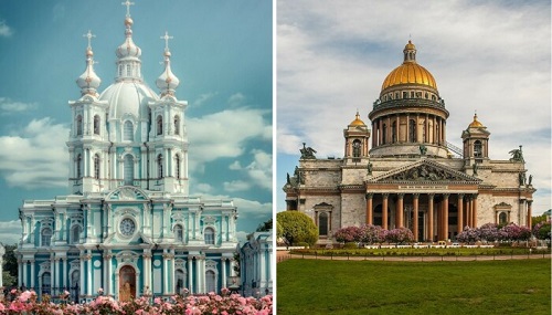 Стасов возводил комплекс зданий Смольного монастыря (фото слева) и входил в Совет по строительству Исаакиевского собора (фото справа)