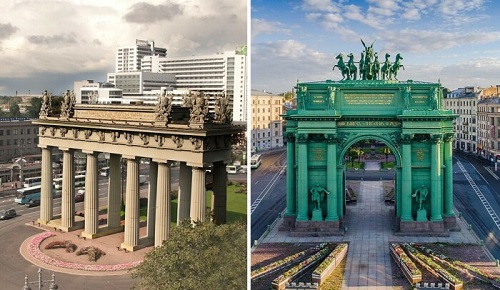 Стасов трудился над созданием Московских триумфальных ворот (фото слева) и Нарвских триумфальных ворот в Петербурге (фото справа)