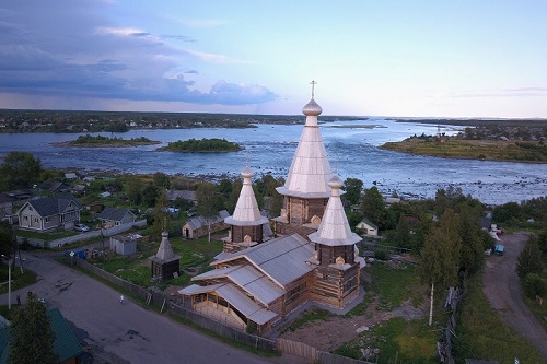 Для многих любителей древностей Кемь знакома во-первых, как цитата из бессмертного Ивана Васильевича (Кемска волость, конечно же), а во-вторых, как место отправления в Соловки. Поэтому большинство паломников, выдвигаясь в северную обитель, добираются сразу до поселка Рабочеостровск, откуда отплывают на теплоходах на Соловецкий архипелаг. Так же поступили и мы в большом путешествии «Российских древностей» в августе 2023 года, однако, прибыв с Соловков, по дороге на Кольский полуостров мы заехали в саму Кемь, где на острове, разделяющем реку Кемь на два рукава, расположен потрясающий Успенский собор – шедевр русского деревянного зодчества.