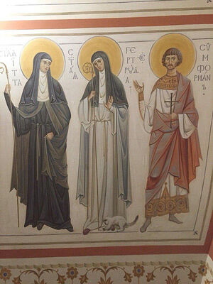 Фреска с изображением прп. Итты и Гертруды Нивельских