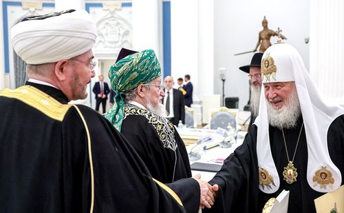 Президент РФ поблагодарил представителей религиозных объединений за поддержку Вооруженных сил России, поддержку военнослужащих и членов их семей, всех тех, кто «борется за Россию в рамках специальной военной операции».