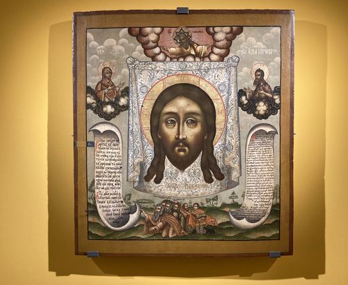 Помимо редких сюжетов, на выставке представлены иконы распространенной тематики, но в необычном иконографическом изводе или с уникальными, своеобразными деталями. Яковлева представила образ Спаса Нерукотворного, который встречает посетителей: это традиционный для русской иконописи образ, но он включен в деисусную композицию с поясными изображениями Богоматери и Иоанна Предтечи. По сторонам от убруса с ликом Христа помещены развернутые свитки со сказанием о чудотворном образе  и  богородичным песнопением. По словам куратора, в этой уникальной композиции соединились элементы нескольких иконографических схем.