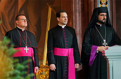 Также среди присутствующих были представители Римско-Католической Церкви: митрополит архиепархии Божией Матери в Москве архиепископ Павел Пецци; советник апостольской нунциатуры в Российской Федерации монсеньор Мислав Ходжич; викарий архиепископа Армянской Католической Церкви для России протоархимандрит Петрос Есаян.