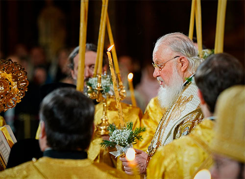 По традиции перед началом богослужения предстоятель Русской Православной Церкви в прямом эфире обратился к телезрителям с рождественским поздравлением.