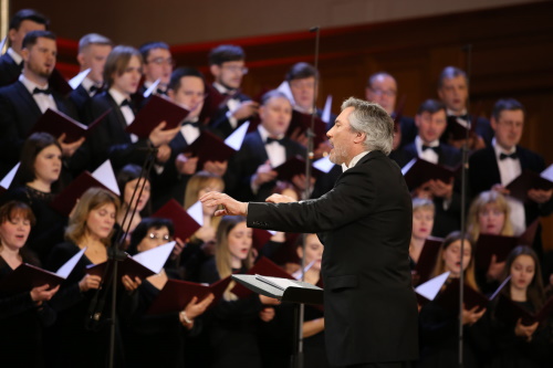 В первом отделении концерта будут исполнены духовные сочинения русского и советского дирижера Николая Голованова, а также произведения митрополита Тульчинского и Брацлавского Ионафана в исполнении Академического Большого хора «Мастера хорового пения» радио «Орфей» (художественный руководитель и дирижер — народный артист России заведующий кафедрой хорового дирижирования Московской консерватории профессор Лев Конторович); хора Казахстанского митрополичьего округа (художественный руководитель и дирижер – Олег Овчинников).