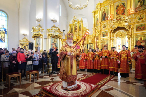 Патриарх Кирилл совершил литургию в Георгиевском соборе в Одинцове Московской области