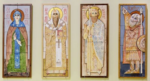 Сергей Шихачевский тоже из семьи художников, он закончил отделение керамики Строгановки, но потом много лет работал как иконописец, расписывал храмы. На работу с керамической иконой его благословил о. Георгий Дробот, который считал этот вид церковного искусства недооцененным. Одной из первых работ Шихачевского в этом жанре стали керамические иконы для ограды храма Введения Пресвятой Богородицы в Барашах. Художник рассказал, как рождалась каждая из 19 икон, причем на узкой вытянутой поверхности в некоторых случаях надо было поместить двух (Борис и Глеб, Петр и Феврония), а то и нескольких святых (София и Вера, Надежда, Любовь).