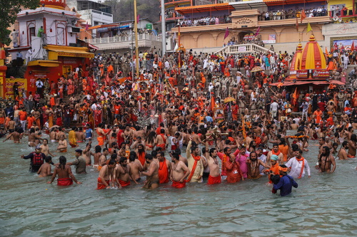 Цель их паломничества – совершить ритуальное омовение в Сангаме, месте слияния священных рек Ганг и Ямуна. В некоторые дни, которые определяются в соответствии с фазами луны и положением планет, совершение омовений является особенно важным. Считается, что, окунувшись в Сангам, человек смывает с себя все грехи и освобождается от цикла смерти и перерождения.