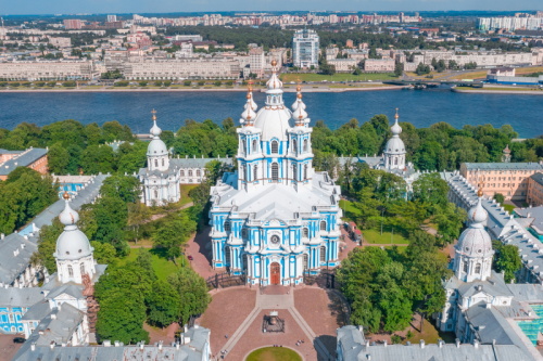 В северной столице, на излучине главной реки – Невы, возвышается удивительный комплекс зданий, который мгновенно узнают по небесно-голубым стенам и золоченым куполам.