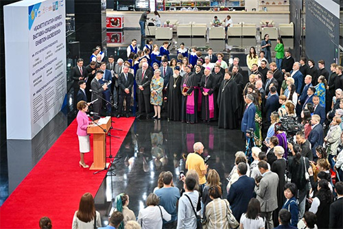 «Примечательно, что сегодняшняя выставка проходит в Казахстане – стране, известной своей приверженностью межрелигиозному диалогу, взаимному уважению и продвижению идей миролюбия и добрососедства, – сказал в своем выступлении апостольский нунций в РК архиепископ Джордж Панамтхундил. – От имени Святого Престола я выражаю глубокую признательность президенту Республики Казахстан Касым-Жомарту Токаеву за поддержку этого мероприятия».