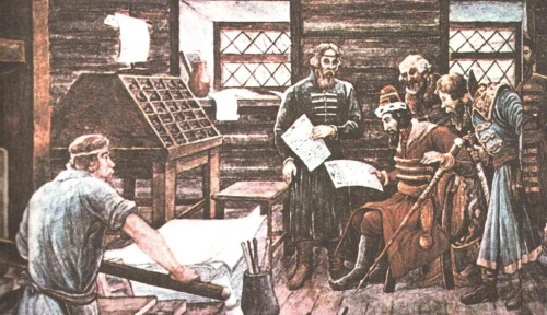 В день открытия государственной типографии сразу же началась работа: Иван Федоров и его помощник Петр Мстиславец после тщательной выверки и редактирования рукописного текста приступили к набору книги «Апостол».