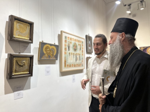 Епископ Тихон вошёл в состав жюри выставки и вручил награды авторам лучших работ. После открытия состоялась музыкальная программа.