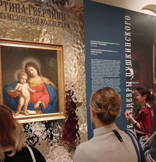 Картина демонстрируется отдельно в рамках проекта «Новые шедевры Пушкинского» до 14 сентября, а затем, как сообщают в музее, займет место в постоянной экспозиции. В описании картины отмечается, что она происходит из Мальмезонской коллекции. Речь идет о собрании супруги Наполеона Жозефины. В своем замке Мальмезон она устроила галерею с верхним освещением для своей коллекции произведений живописи, скульптуры и декоративно-прикладного искусства. После победы над Францией, император Александр I выкупил у наследников покойной Жозефины более 40 лучших работ, что позволило, как отмечают историки, покрыть часть долгов матери её детям от первого брака Эжену и Гортензии. В октябре 1815 года картины были выставлены в Северном кабинете корпуса Лоджий Рафаэля, получившем имя Мальмезонского зала, сообщается на сайте Эрмитажа. Затем император Николай I приобрел еще 30 картин из Мальмезонского дворца. После революции 1917 года в Эрмитаж от семьи герцогов Лейхтенбергских – потомков Эжена Богарне, также поступили некоторые происходившие из Мальмезона произведения искусства. Картина Гверчино, как говорится в описании ГМИИ, фигурировала одно время в фонде Румянцевского музея, а после его расформирования в 1924 году поступила в Государственный музейный фонд. Последняя запись 1928 года свидетельствует о передаче полотна в раздел «Антиквариат» для продажи за границу.