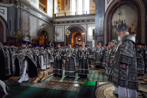 В завершение богослужения Великой среды Патриарх Кирилл в последний раз в этом году прочитал великопостную молитву преподобного Ефрема Сирина.