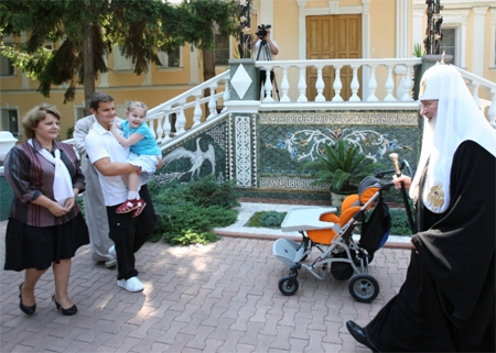 Одесса, 21 июля. 21 июля в Успенском мужском монастыре Одессы Патриарх Московский и всея Руси встретился с пятилетней девочкой Александрой Климовой. Вместе с ней к Патриарху пришли ее мама Светлана Станиславовна и брат Александр, сообщает пресс-служба Патриарха Московского и всея Руси.