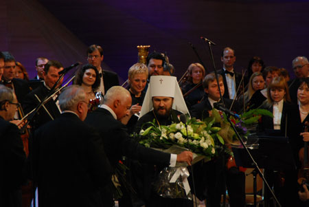 В заключение Московский филармонический оркестр под управлением Спивакова и хор Академии хорового искусства имени В.С. Попова исполнили Stabat Mater митрополита Илариона (Алфеева). Произведение было встречено бурной овацией зала, после чего на бис был исполнен еще один опус архиерея и композитора – «На реках Вавилонских», часть симфонии «Песнь восхождения», сочиненной им в 2008 году на слова Псалмов.