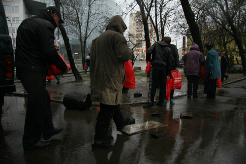 Многие из этих людей отказываются рассказывать о себе и закрывают лицо от камеры пакетами. Наверняка, среди них есть и разыскиваемые милицией или должники, прячущиеся от своих заимодавцев, но именно к таким людям пришел Христос две тысячи лет назад, и нам заповедовал в них видеть Самого Себя.