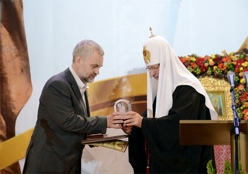 Под звуки фанфар каждому лауреату Патриарх вручил диплом, сертификат на получении материальной составляющей премии, знаки премии и цветы.