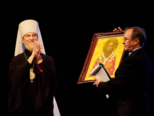 Митрополит Хабаровский и Приамурский Игнатий в приветственном слове участникам кинофорума сказал, что талант художественного творчества – это когда человеку Богом дано откликнуться на Божественное, и далее – идти по путям Господним. В дар Николаю Бурляеву митрополит Игнатий преподнес икону своего небесного покровителя – свт. Игнатия (Брянчанинова).