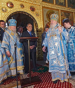 Кульминацией трехчасовой литургии стал торжественный вынос из алтаря главного подарка, привезенного Алексием II в дар Казанской епархии,– списка чудотворной иконы Казанской Божией Матери, год назад переданного Русской православной церкви Ватиканом. Патриарх объявил, что отныне список передается Казанской епархии и будет храниться в месте его обретения – Крестовоздвиженском храме Богородицкого монастыря. Глава РПЦ также выразил надежду, что открытие собора и возвращение иконы "поспособствует духовному развитию народа земли Казанской". "Полагаю, что Татарстан вполне может стать регионом, где в государственных и муниципальных средних школах станут успешно преподаваться основы православной и исламской культуры",– заметил Алексий II. Минтимер Шаймиев никак не прокомментировал это предположение, однако заверил патриарха, что Татарстан намерен и дальше укреплять доверие к "республике с уникальными традициями межэтнического, межконфессионального взаимопонимания и согласия".