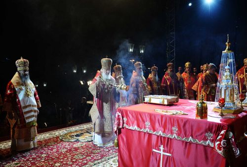 В ночь c 16 на 17 июля, в сотую годовщину расстрела царской семьи, глава РПЦ возглавил Литургию перед Храмом-памятником на Крови в честь Всех святых, в земле Российской просиявших, в Екатеринбурге. Помост был установлен на площадке перед вратами нижнего храма, где находится «Царская комната» — придел в честь святых Царственных страстотерпцев, возведенный на месте убиения Царской семьи.