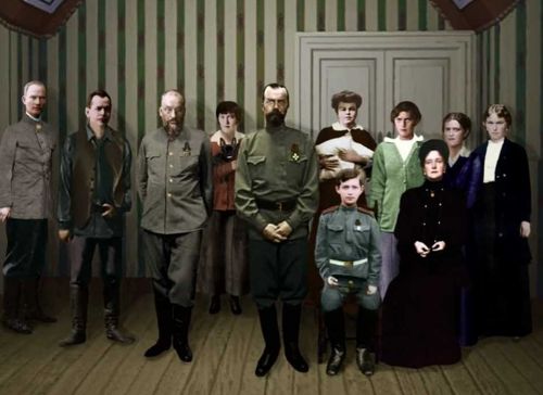 Из воспоминаний М. А. Медведева: «Когда все вошли в нижнюю комнату… то оказалось, что комната очень маленькая. Юровский с Никулиным принесли три стула… На один из них, ближе к правой арке, на подушечку села царица, за ней стали три старшие дочери. Младшая Анастасия почему-то отошла к горничной, прислонившейся к косяку запертой двери в следующую комнату-кладовую. В середине комнаты поставили стул для наследника, правее сел на стул Николай II, за креслом Алексея встал доктор Боткин. Повар и лакей почтительно отошли к столбу арки в левом углу комнаты и стали у стенки».