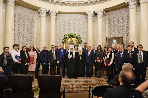 Затем Патриарх наградил членов Экспертного и Попечительского советов Макариевского фонда. Указом Патриарха во внимание к вкладу в утверждение традиционных ценностей в обществе медали «В память 100-летия восстановления Патриаршества в Русской Православной Церкви» были удостоены: