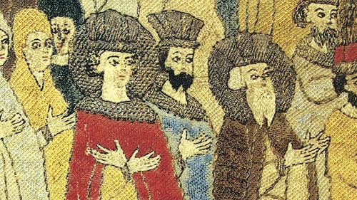 Предположительно мастерская Елены Волошанки. Пелена «Вынос иконы „Богоматерь Одигитрия“», около 1498 (фрагмент). читается, что на ней изображен торжественный выход великого князя Ивана III на Вербное воскресенье. Фото: ГИМ