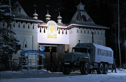 Автозак у Среднеуральского женского монастыря, 29 декабря 2020 года. Фото: Донат Сорокин / ТАСС / Scanpix / LETA