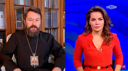 29 января 2022 года в передаче «Церковь и мир», выходящей на канале «Россия 24» по субботам и воскресеньям, председатель Отдела внешних церковных связей Московского Патриархата митрополит Волоколамский Иларион ответил на вопросы ведущей Екатерины Грачевой и телезрителей.