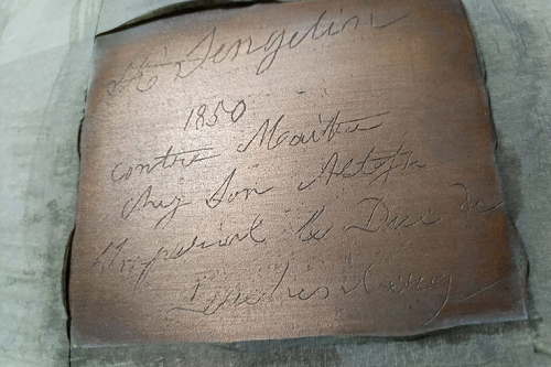 Обнаруженная реставраторами надпись содержит следующий текст: «H. Sengеlin. Contre-maître chez son Altesse Impériale Le Duc de Leuchtenberg».