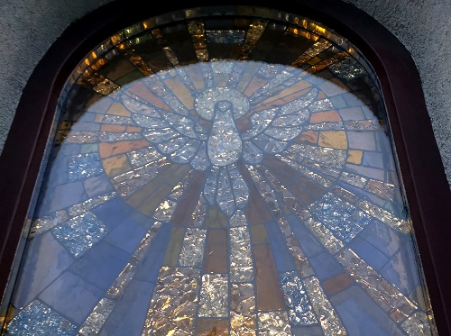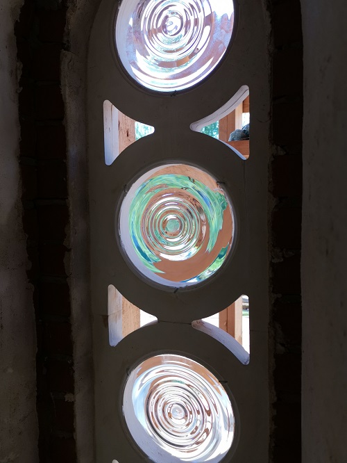 «Главное в мозаичном витраже – это его светоносность, – поясняет художник. – Мозаичные витражи выполняются из россыпи эрклёзов, нежных оттенков, различной формы и фракции. Благодаря остроте граней эрклёзов витражи получаются светоносными и искрящимися».