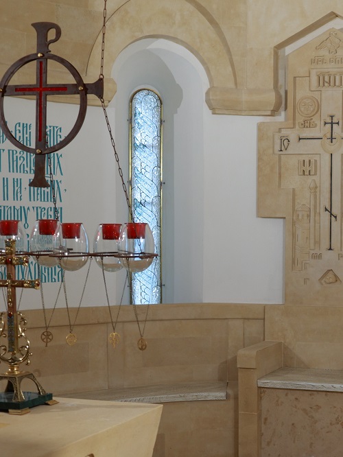 «У художника своя технология, – поясняет руководитель Архитектурного отдела ФХУ. – Он меняет старые стеклопакеты на новые, с готовыми витражами. Витражи объемные, рельефные. Напоминают хрусталь. Мы очень довольны. Витраж выполняет две функции: с одной стороны, он отделяет внутреннее пространство храма от внешнего мира, не закрывая при этом наглухо проемы, так что свет продолжает проникать в церковь. С другой – одновременно создается художественный образ. Обычно мы имеем живописные изображения на стенах, сводах, на иконах. А в данном случае изображение появляется на световой поверхности. И, проникая через витраж, свет становится не только светоносным, но и цветоносным. И в этом проявляется символика Божественного света», – заключает протоиерей Андрей Юревич.