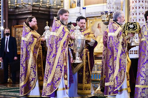 Вечером 20 апреля, в канун четверга Страстной седмицы, Патриарх Кирилл принял участие в богослужении в кафедральном соборном храме Христа Спасителя в Москве.