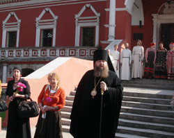 Москва, 17 сентября, Благовест-инфо. Епископ Зарайский Меркурий открыл 16 сентября выставку живописи «Окно в рай» в Высоко-Перовском монастыре в центре столицы. Выставка организована Синодальным отделом по религиозному образованию и катехизации, который возглавляет епископ, в сотрудничестве с культурным фондом «АНО-Нерехта». Масляные полотна художников И.Покладовой, Г.Гордона, Н.Коноваловой, А.Коровина, А.Переверзевой и других будут экспонироваться с 16 по 20 сентября под открытым небом, между Сергиевской церковью и собором святителя Петра.