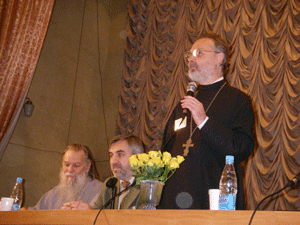 Протоиерей Александр Виноградский окормляет ивритоговорящих и славяноговорящих православных в Иерусалиме. В начале своего выступления он сообщил, что приехал на конференцию СФИ по благословению двух Патриархов: Иерусалимского Феофила, к юрисдикции которого принадлежит, и Константинопольского Патриарха Варфоломея. Подробно рассказав о противоречиях, которые существуют в среде верующих на Святой Земле, он посвятил свое выступление теме полноты и единства Церкви. «Любой человек, даже если он не является или пока не является христианином, если он еще не понимает кафоличности Церкви, должен чувствовать себя в Церкви как дома», -- подчеркивал о. Александр, добавляя, что «Сион—это родина каждого, родина всех».
