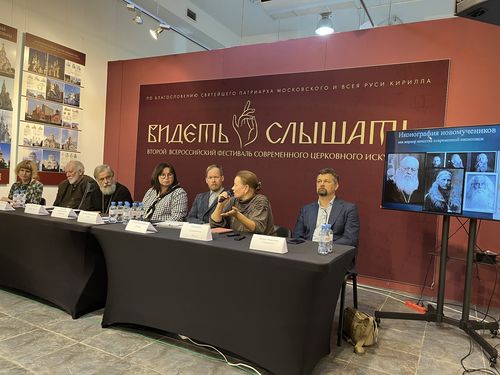Модератор круглого стола искусствовед Оксана Головко отметила, что нынешних иконописцев отделяет от новомучеников и исповедников сравнительно небольшой по историческим меркам срок. В 2000-х годах, когда Русская Православная Церковь прославила более 1600 новомучеников, еще были живы те, кто знал их, – дети, внуки, духовные чада. Перед художниками встала препростая задача: создать такие образы, которые бы были именно иконами, моленными образами, но при этом «соответствовали тому, что знали близкие». Так сказал протоиерей Кирилл Каледа, настоятель храма Новомучеников и Исповедников Российских на Бутовском полигоне, дедушка которого, протоиерей Владимир Амбарцумов, был канонизирован в сонме священномучеников.