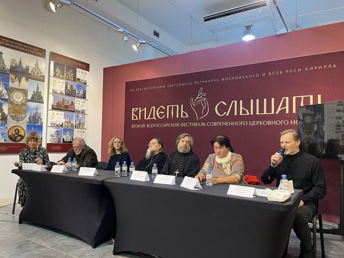 На круглом столе своими соображениями поделились также художник-монументалист Василина Королева, завкафедрой Церковной истории Сретенской духовной академии Олег Стародубцев, генеральный продюсер и основатель фестиваля современного церковного искусства «Видеть и слышать», иконописец Дмитрий Трофимов и слушатели из зала.