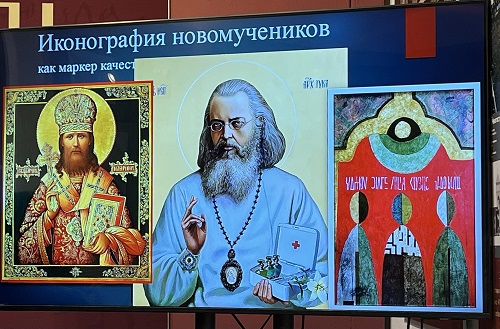 На конкретных примерах обсуждалась тема обучения иконописцев, в том числе – их подготовка к написанию икон новомучеников. Протоиерей Николай Чернышёв, доцент кафедры иконописи ПСТГУ, убежден, что начинать обучение студентов с создания иконографии новопрославленных святых нельзя, необходимо познакомить их с опытом иконописцев второй половины ХХ века – Ирины Ватагиной, Марии Соколовой (инокини Иулиании), чтобы они «соотносили себя с этими мастерами», осваивали иконописный язык. И только к концу обучения можно поручить, и то не всем, разработку новой иконографии. Мария Глебова, доцент той же кафедры, рассказала об этапах разработки образов новомучеников и исповедников в иконописной мастерской ПСТГУ. По ее словам, студенты «идут от портрета»: рассматривая фотографию, создают портрет святого, что позволяет «почувствовать индивидуальность», и на этой основе пишут икону.