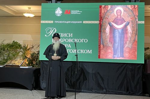 Настоятель Покровского собора протоиерей Алексей Михеев поздравил всех с выходом нового издания и вкратце рассказал об истории храма, который был построен в конце XVIII века. Уже через полвека его алтари были запечатаны вплоть до 1905 г. Богослужение возобновилось, и храм не закрывался даже в советское время. Поскольку здание не отапливалось (храм строился как летний), в зимнее время во время служб при большом стечении молящихся стены покрывались конденсатом, и росписи пришли в удручающее состояние. Однако реставрации 1970-х и 1990-х гг. помогли их сохранить. Сейчас этому способствует и проведенное в храм отопление, и сохранение температурно-влажностного режима. О. Алексей пригласил всех, кто интересуется культурой, искусством и духовным наследием старообрядчества, приходить в Покровский собор, где ежедневно совершается богослужение. Митрополит Корнилий уточнил, что те, кто не принадлежит в РПСЦ, не могут молиться на этих службах, а должны «скромно постоять у дверей», рассматривая росписи.