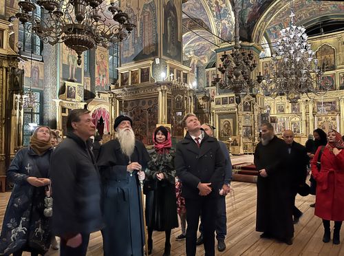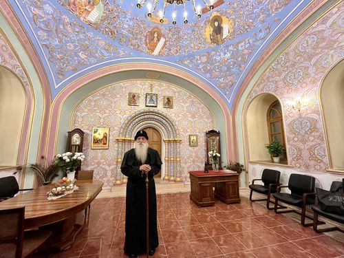 Далее он привел всех в митрополичью резиденцию, которая устроена в помещении бывшей скудельни, недавно была отреставрирована и расписана. Митрополит подробно рассказал о каждом почитаемом старообрядческом святом, чей образ можно увидеть в этом помещении: это протопоп Аввакум, Федосья Морозова, святители Амвросий Белокриницкий и Арсений Уральский, священномученики Рафаил Киевский, Тихон Томский, Геронтий Петроградский и другие.